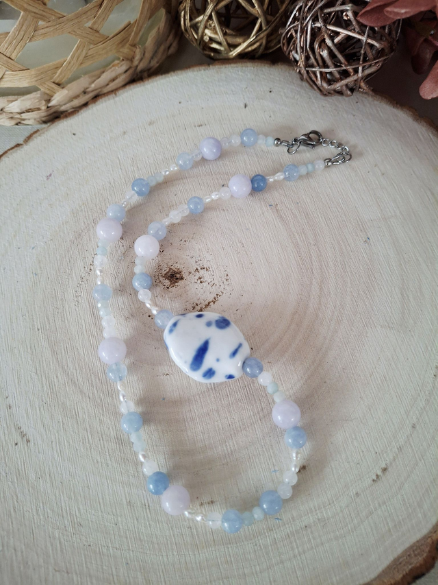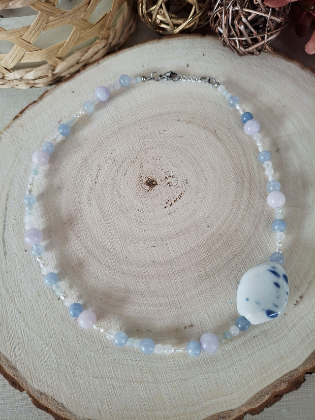 • Perles naturelles de jade bleu, d'aqua-marine et d'eau douce / perle en céramique