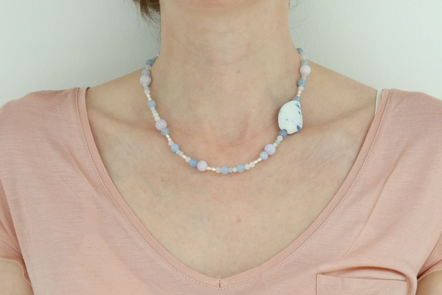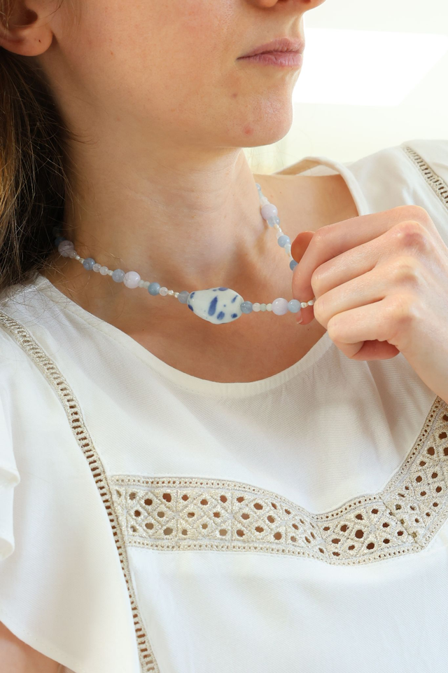 Le collier Douceur bleutée rappelle les nuances subtiles des ciels d'été. /// Soldé car légères imperfections au niveau des finitions (perles à écraser)