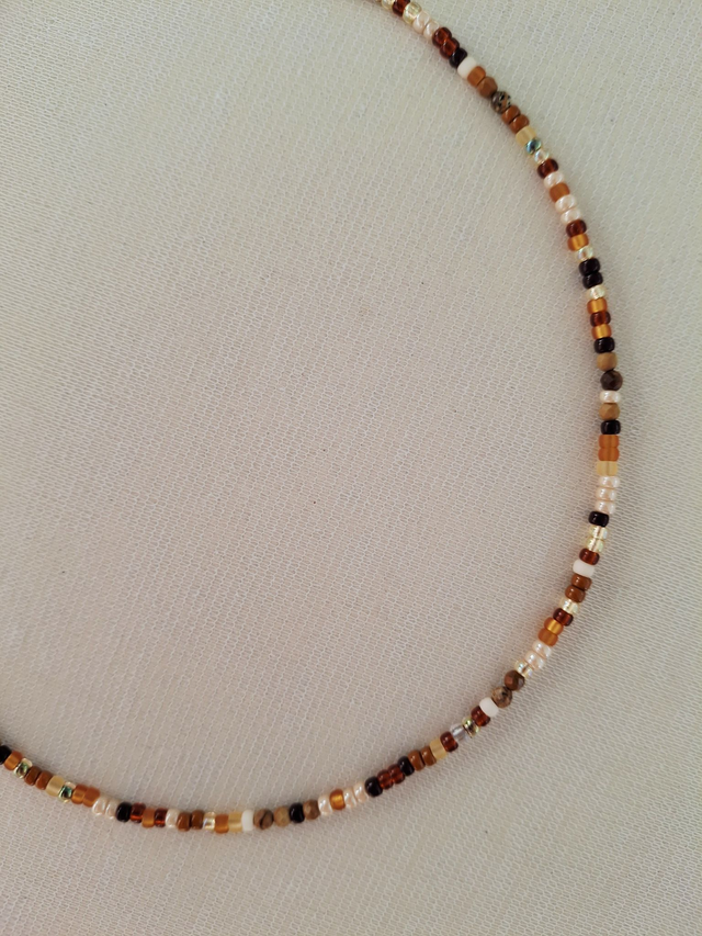 Le collier Éclat - brun beige argenté