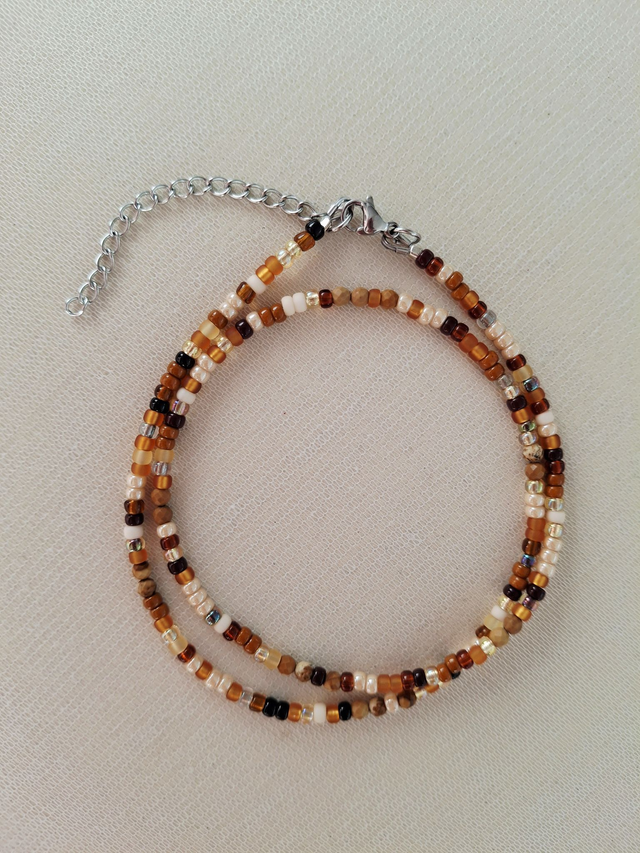Chaque bijou est assemblé à la main avec patience et soin dans mon atelier en Belgique. Une grande partie des perles utilisées sont naturelles, ce qui signifie que de légères variations peuvent apparaitre. Le "fait main", c'est aussi accepter l'imperfection : ces petits défauts font partie de l'âme du bijou et contribuent à son charme unique.