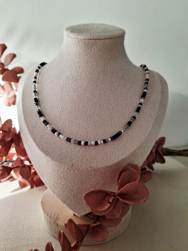 Le collier Éclat - noir et blanc doré