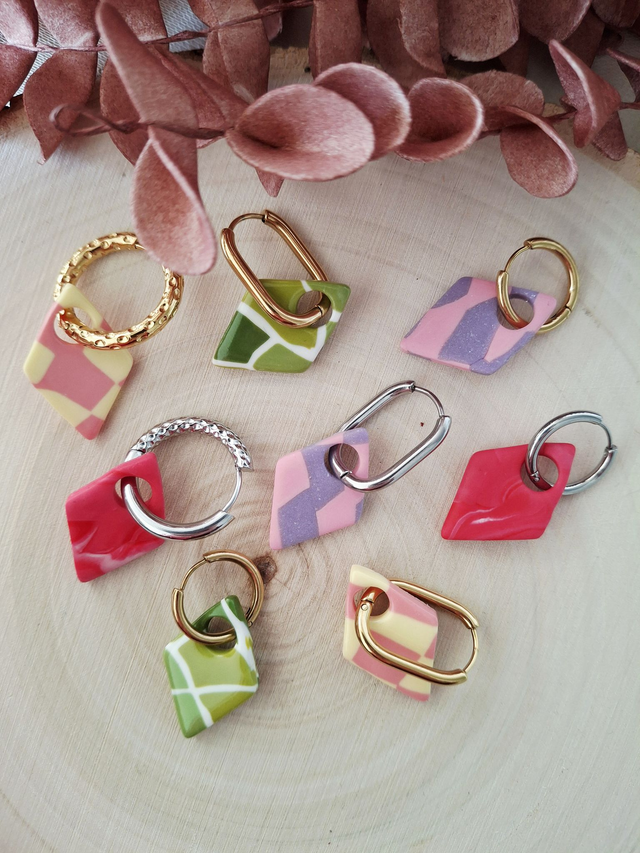 Pampilles en pâte polymère pour créoles interchangeables (attention : créoles dorées ou argentées vendues séparément)