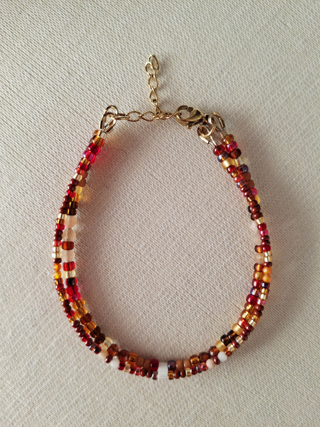 Le bracelet double rangs Équinoxe - brun orangé (finition dorée ou argentée)